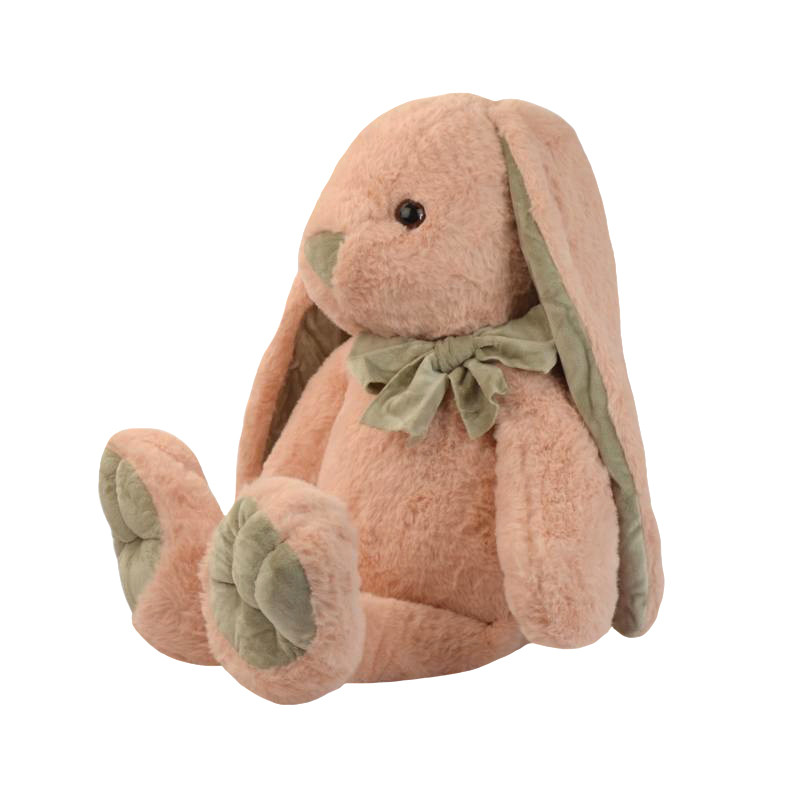 Polyester toy Rabbit big with a bow Powder + Gray